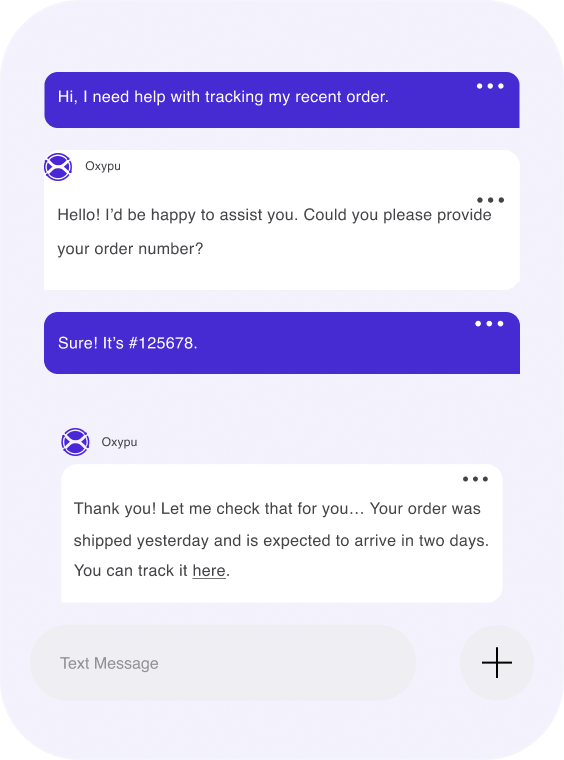 Oxypu integrates seamlessly through customized training during onboarding, learning about your business operations and customer interactions to deliver accurate, context-aware responses and align with your unique needs.